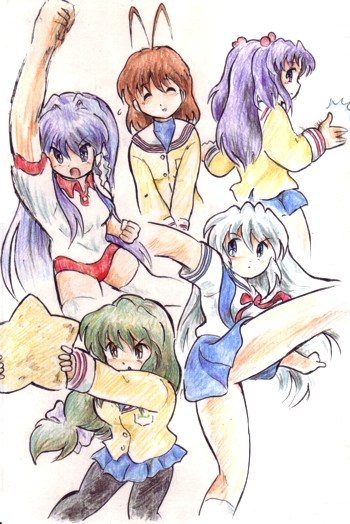 hidaka yumemi, imamura suzume, ono ichiko, sora wo miageru shoujo no hitomi ni utsuru sekai, highres, scan, 3girls, album cover, braid, brown hair, cloud, cover, day, multiple girls, see-through clothes, sky