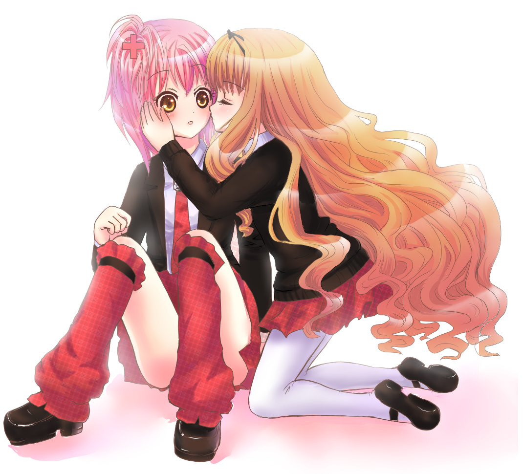 2girlsblonde hairblushcensoredclosed eyesconvenient censoringconvenient leghair ornamenthairbandimminent kisskneehighskneelingleg warmerslong hairloose socksmultiple girlsnecktiepantyhosepink hairschool uniformshort hairside ponytailsittingskirtsocksvery long hairwavy hairwhite pantyhoseyellow eyesyuri