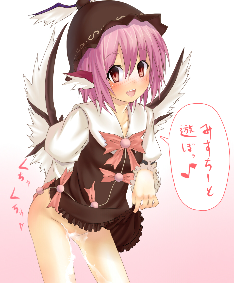 1girlanimal earsblushbottomlessclothes liftcumdressdress liftfemale focusfemale masturbationhatmasturbationno pantiespetitepink hairred eyessolowings