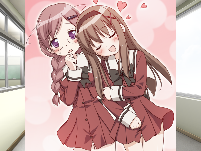 erakin, aki (girls und panzer), mika (girls und panzer), girls und panzer, highres, 2girls, blonde hair, blush, blush stickers, brown hair, closed eyes, closed mouth, green eyes, instrument, jacket, kantele, keizoku military uniform, long hair, looking at another, military uniform, multiple girls, short hair, smile, track jacket, tulip hat, twintails