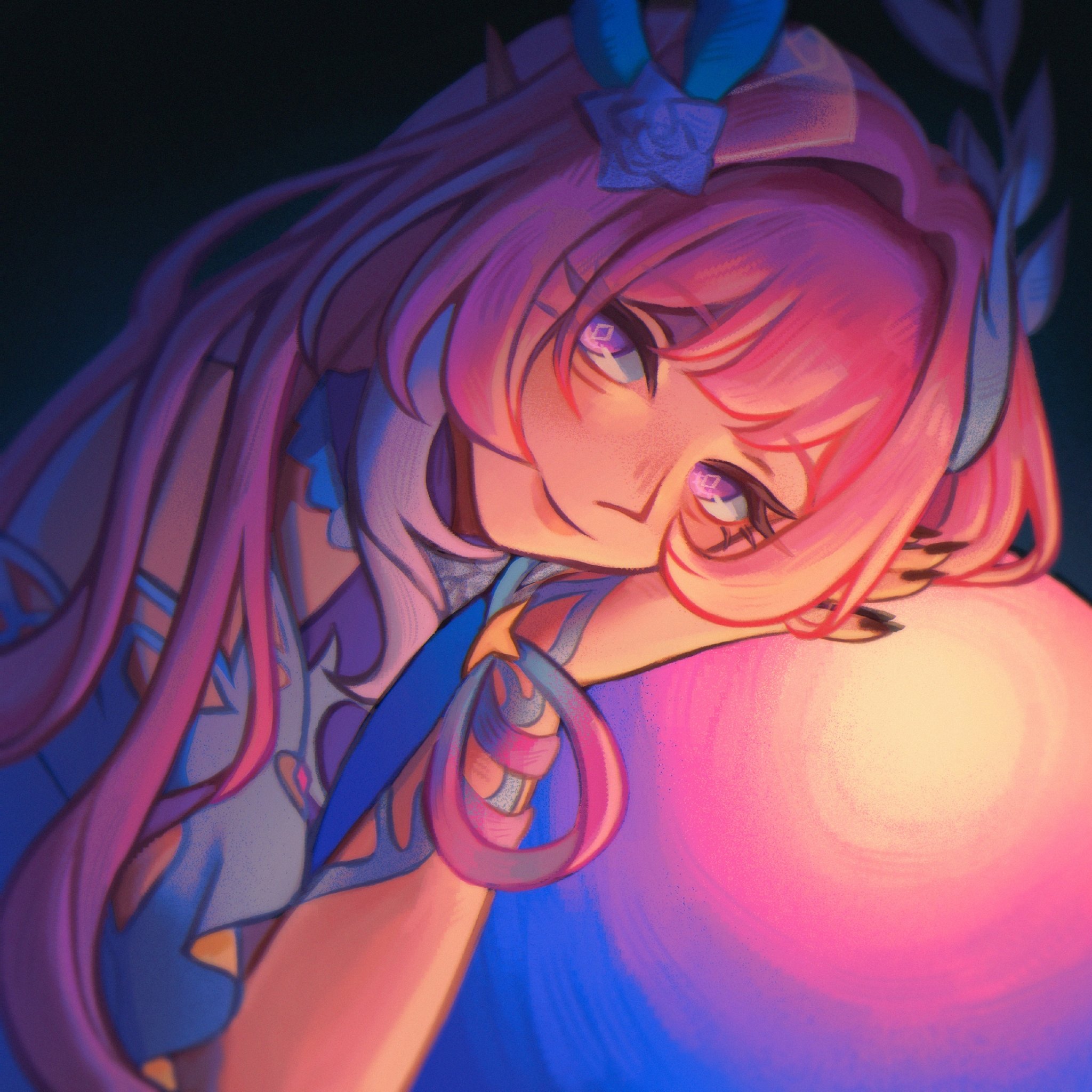 1girlbare shouldersblack nailsdiamond (shape)diamond-shaped pupilsdressflowerflowerdr3amerhair flowerhair ornamenthalolong hairlooking at viewermulticolored hairorbpink hairpurple eyessmilesolosymbol-shaped pupilstwo-tone hairvery long hairwhite dresswhite hair