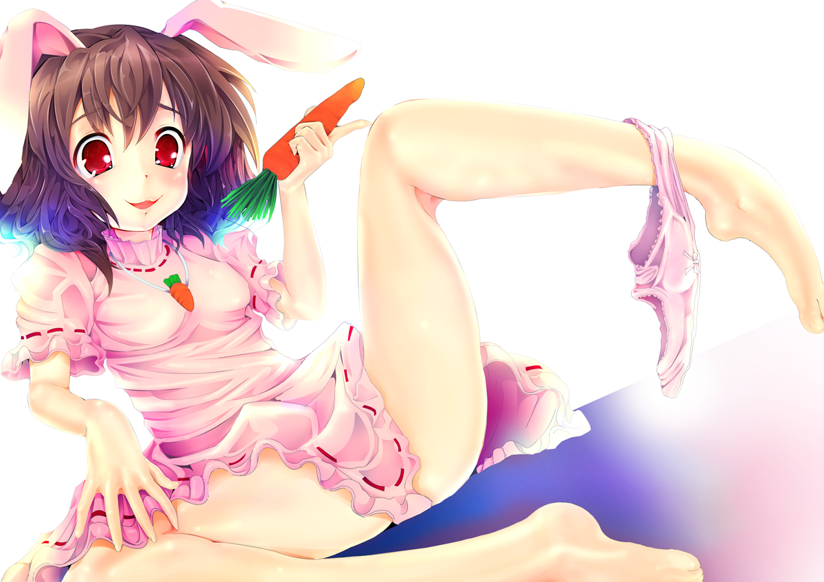 1girlanimal earsbad anatomybad feetbarefootblack haircarrotfeetfemale focuspantiespanties around legpoorly drawnrabbitrabbit earsred eyesshort hairsolounderwear
