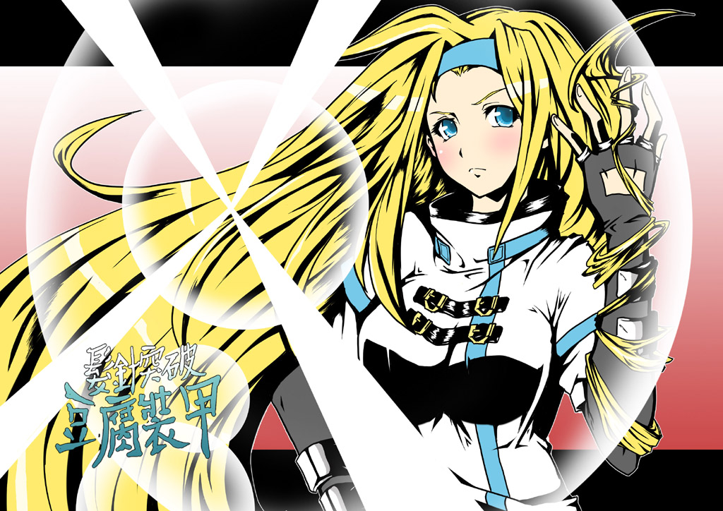 1girlblonde hairblue eyesbreastsfemale focusgloveslens flarelong hairparodysolostyle parodyupper body
