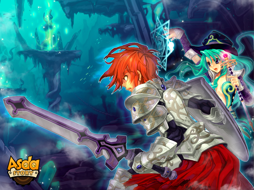 1boy1girlaqua hairarmorcopyright namefantasylong hairorange hairshort hairswordwarriorweaponwitch