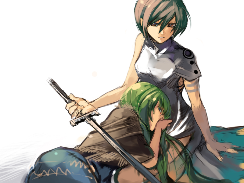 youichi82880400, futaba sana, magia record: mahou shoujo madoka magica gaiden, mahou shoujo madoka magica, commentary request, highres, translation request, 1girl, alternate costume, arm up, bare arms, blush, cheering, cheerleader, cropped legs, cropped shirt, diamond print, flying sweatdrops, frilled skirt, frilled socks, frills, furrowed brow, greyscale, hair down, holding, holding pom poms, kneehighs, knees, long hair, looking at viewer, midriff, miniskirt, monochrome, navel, nervous, open mouth, pleated skirt, pom pom (cheerleading), pom poms, short sleeves, sidelocks, simple background, skirt, socks, solo, straight-on, sweatdrop, tareme, v-neck, wavy hair, white background