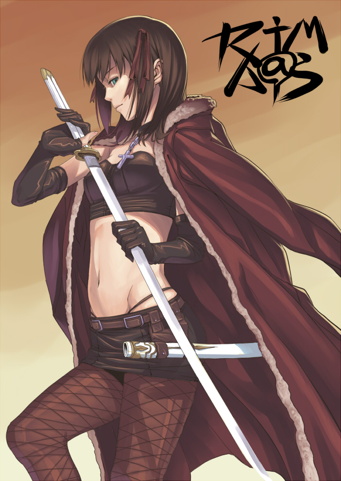 00s1girlbreastsbrown haircoatelbow glovesfemale focusfishnet pantyhosefishnetsglovesgreen eyeskatanamidriffpantyhoseshort hairsoloswordweapon