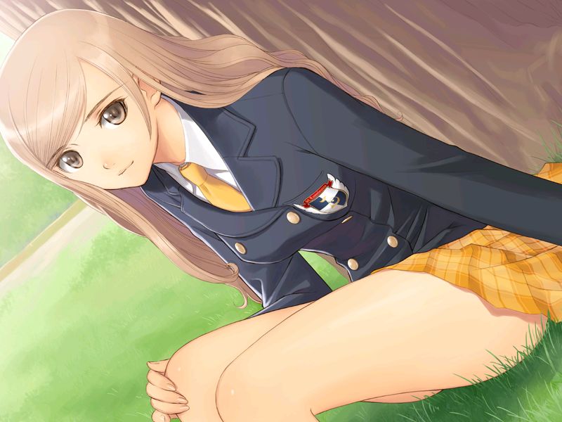 1girlbrown eyesbrown hairfemale focuslegsplaid clothesplaid skirtschool uniformskirtsolothighs