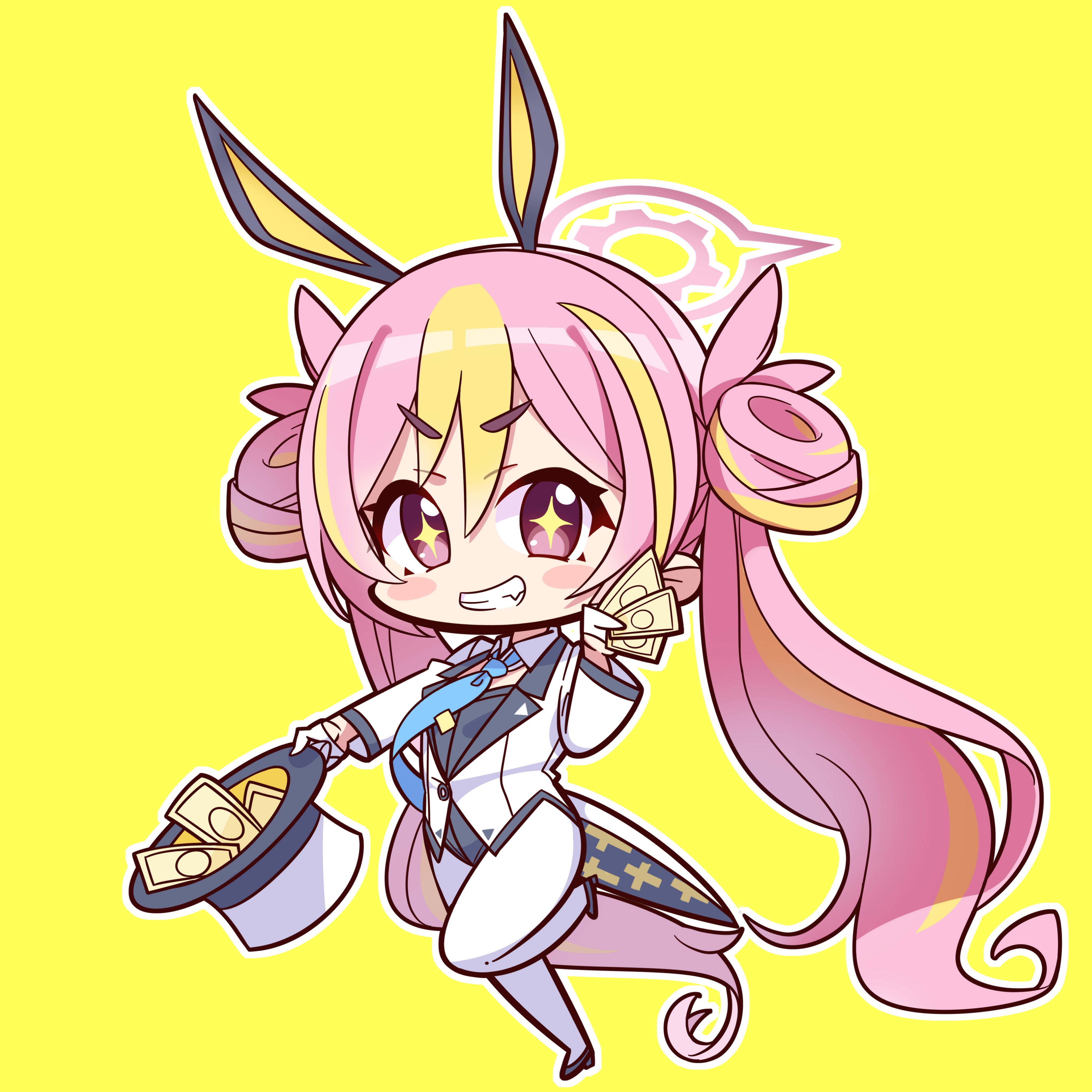 :d1boy1girlanimal earsbanknoteblonde hairblue necktieblush stickersbunny daychibichibi onlydouble bunfake animal earsfangformal clothesfull bodygrinhair between eyeshair bunhatholdingholding moneyholding unworn clothesholding unworn hatlong hairlong sleeveslooking at viewermoneymulticolored hairnckak9rjjdjff4enecktieofficial alternate costumeofficial alternate hairstyleopen mouthoutlinepantyhosepink eyespink hairplayboy bunnyrabbit earssimple backgroundsmilesmugsolostandingstanding on one legstreaked hairsuittaremethick eyebrowstop hattwintailsunworn hatunworn headwearv-shaped eyebrowsvery long hairwhite outlinewhite pantyhosewhite suitwide sleevesyellow background