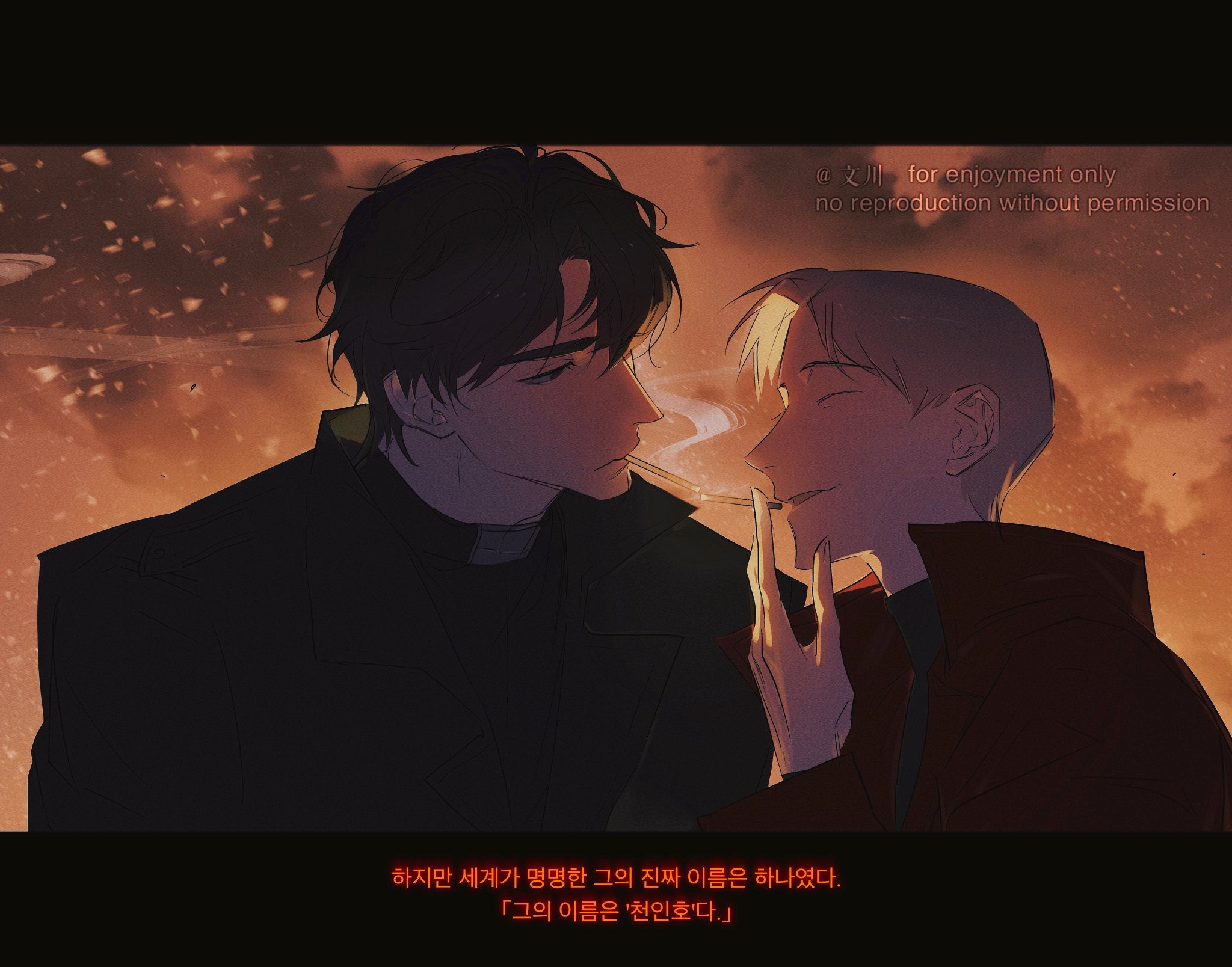 2boysbacklightingblack coatblack hairblack shirtblonde haircaptioncheon inhocigarettecigarette kissclosed eyescoatfacing viewerholdingholding cigarettekorean textletterboxedlooking at anothermale focusmultiple boysnicayukoopen clothesopen coatpopped collarred coatshirtshort hairsmilesmokesmoke trailsunsetupper bodyyaoi
