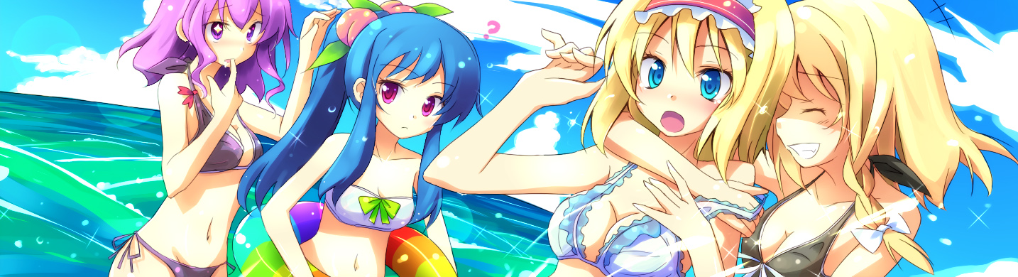 1boy4girlsalternate hairstylebeachbikiniblonde hairblue eyesblue hairbreastscleavagefemale focusfoodfrilled bikinifrillsfront-tie topfruitgrinhair ribbonhairbandhughug from behindinnertubelowleglowleg bikinimedium breastsmultiple girlsoceanpeachponytailpurple eyespurple hairribbonsalivaside-tie bikini bottomsmileswim ringswimsuit