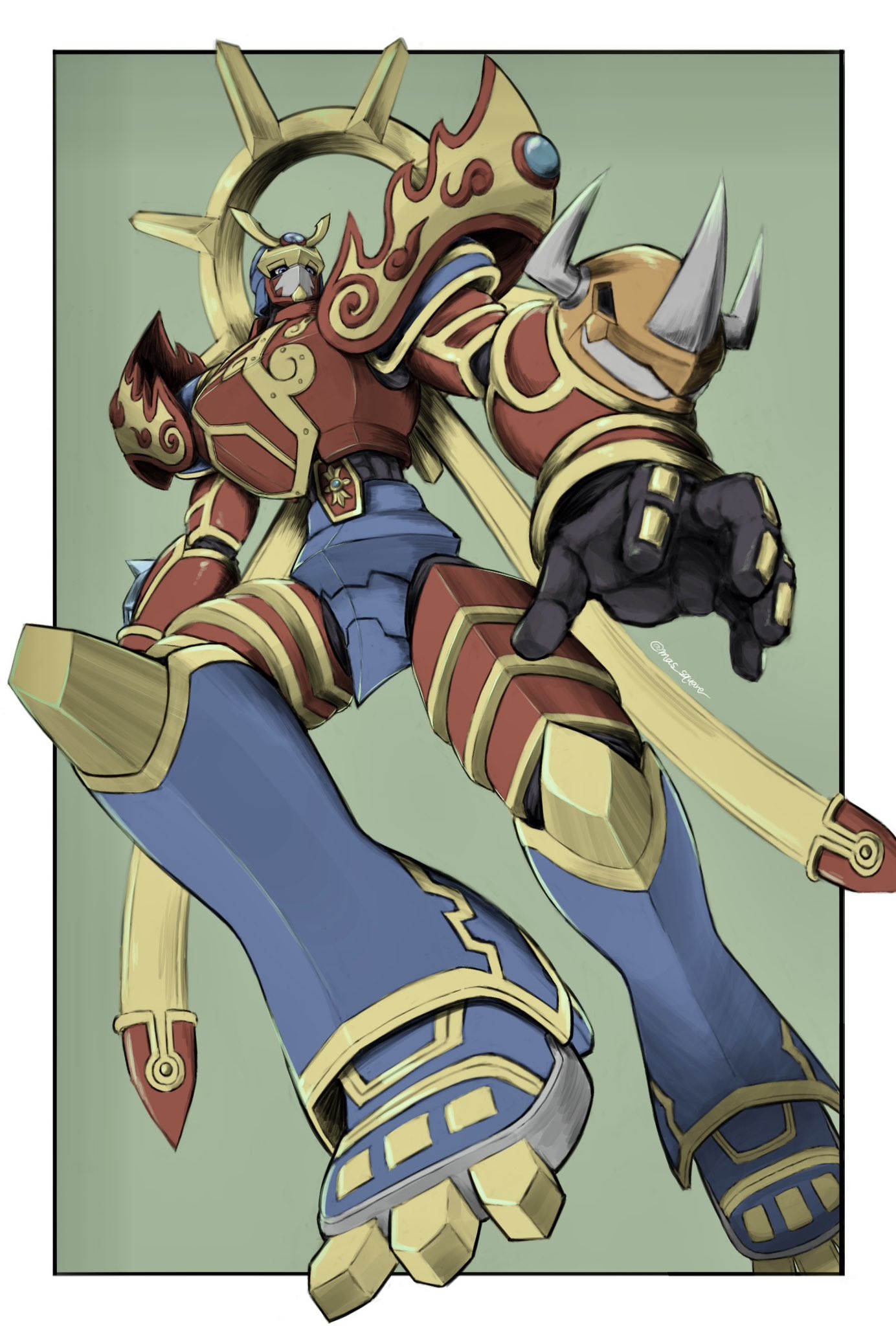 armorblue armorborderdigimon (creature)full bodygreen backgroundred armorsimple backgroundsolowhite border