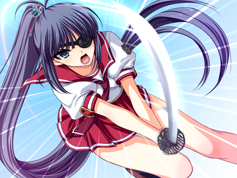 dhiea, maka albarn, soul eater, bad id, bad pixiv id, highres, 00s, 1girl, blonde hair, female focus, gloves, green eyes, long hair, necktie, plaid clothes, plaid skirt, scythe, skirt, solo, twintails