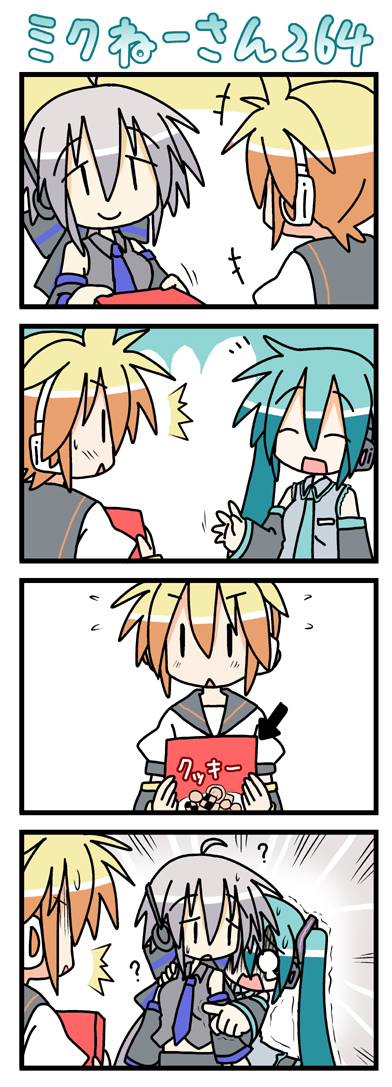 tori (artist), tori (hiyoko bazooka), hachune miku, hatsune miku, vocaloid, 2girls, aqua eyes, aqua hair, blush, boots, detached sleeves, evil grin, evil smile, grin, headset, long hair, multiple girls, necktie, negi suppository, shadow, skirt, smile, spring onion, thigh boots, thighhighs, twintails, very long hair, zettai ryouiki