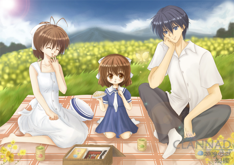00santenna hairbarefootblue eyesblue hairbrown eyesbrown hairchildclosed eyesfamilyfoodpicnicponytailschool uniformshort hair