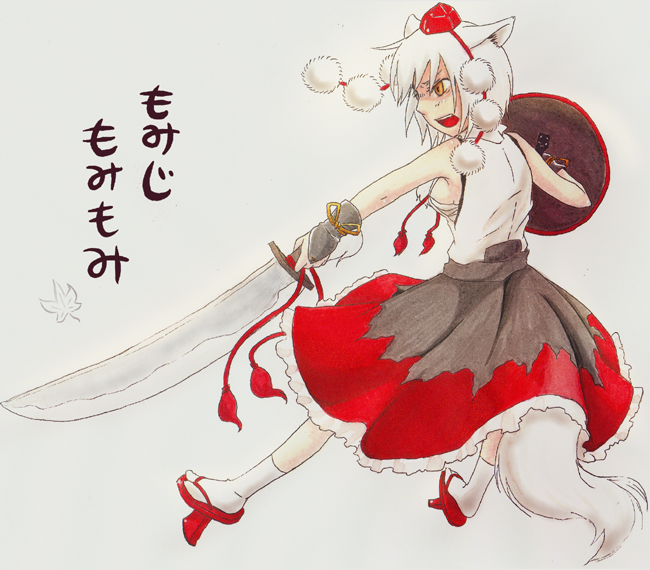 1girlanimal earsbandagesbreastsfemale focusgetahatsarashishieldshort hairsideboobsoloswordtailtengu-getatokin hatweaponwolf earswolf tailyellow eyes