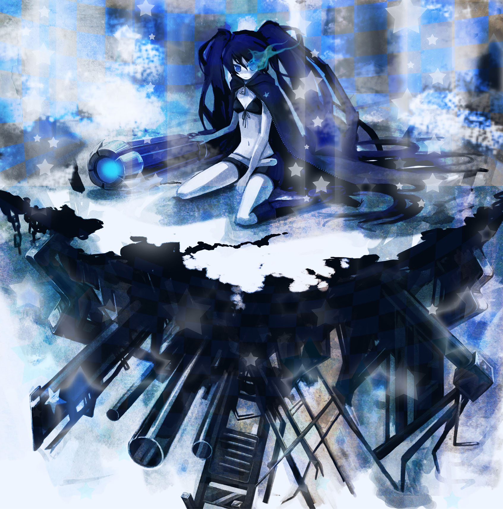 takenashi eri, nagi, charamel, kannagi, highres, 00s, 1girl, blue hair, blunt bangs, boots, long hair, pleated skirt, purple eyes, skirt, wand, white skirt, zoom layer