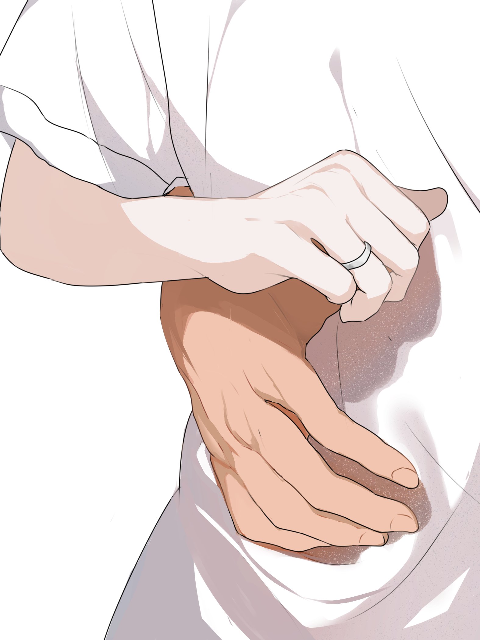 fushi, the nameless boy (fumetsu no anata e), fumetsu no anata e, highres, 1boy, animal, brown cloak, brown coat, cloak, coat, fur-trimmed cloak, fur-trimmed hood, fur trim, gloves, hair between eyes, hood, hooded cloak, iwa111116666, pants, red eyes, rope, short hair, smile, white background, white hair, white wolf, wolf, yellow eyes