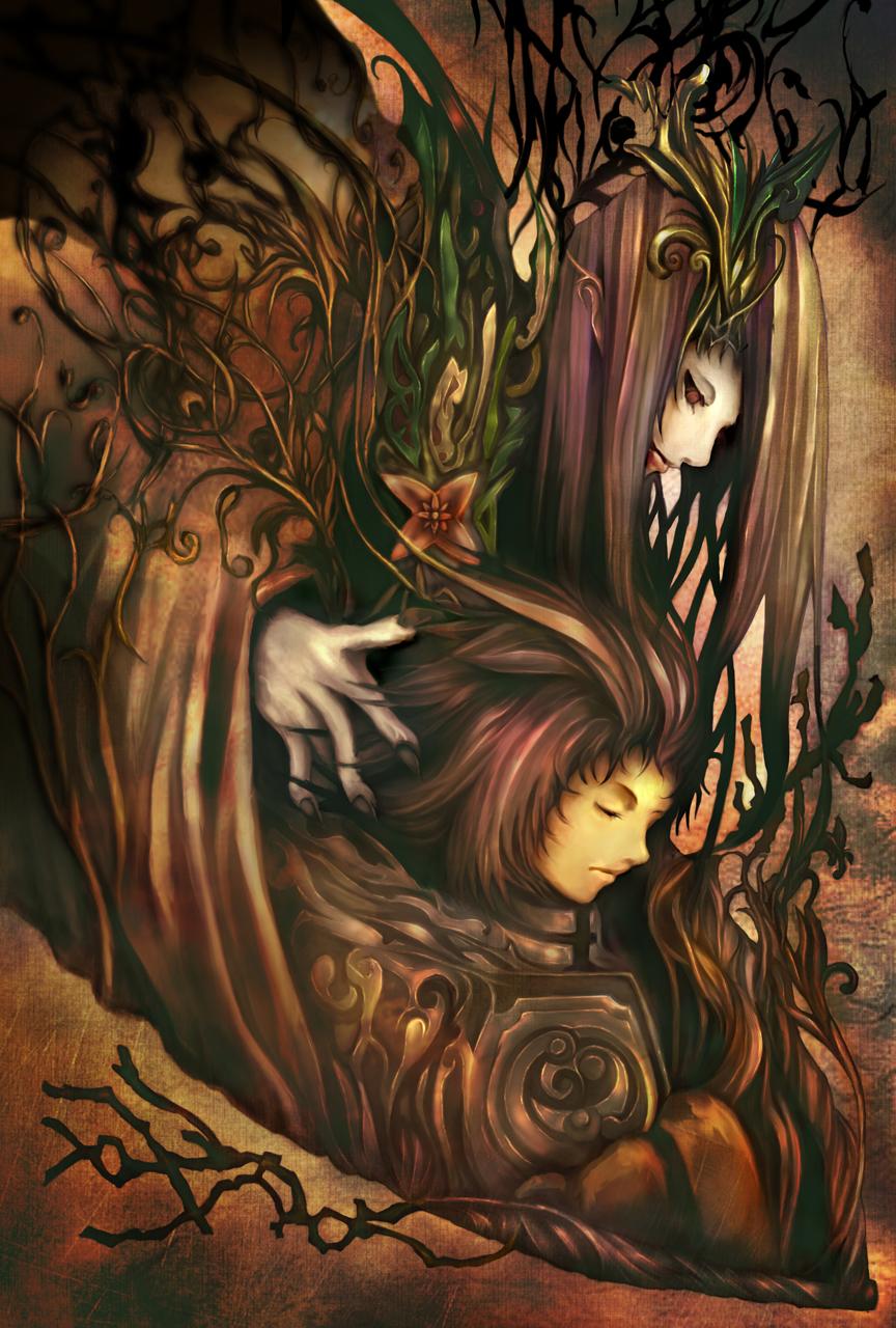 mas square, sakuyamon, digimon, commentary request, highres, 1girl, armor, arms up, belt, black belt, black bodysuit, black gloves, bodysuit, breasts, covered eyes, detached sleeves, digimon (creature), facial mark, floating hair, fox mask, from below, gloves, grey hair, holding, holding staff, large breasts, leg warmers, long hair, low-tied long hair, low ponytail, mask, open mouth, ponytail, purple lips, purple sleeves, shoulder armor, solo, squatting, staff, very long hair, yellow armor, yellow mask, yin yang, yin yang print