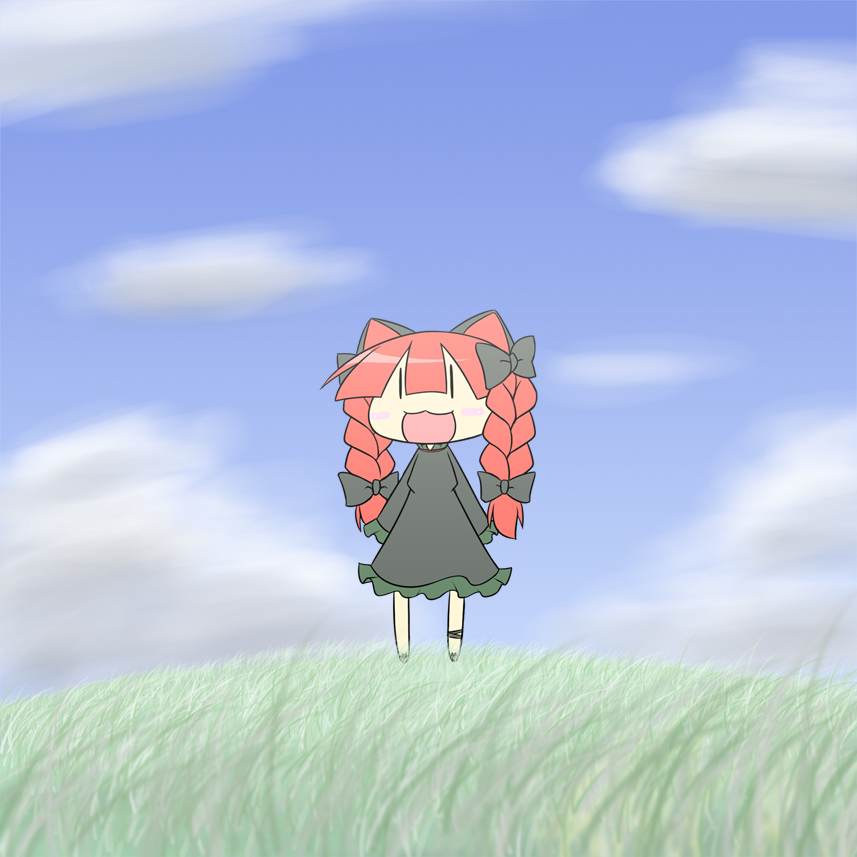 :31boy1girl4komaanimal earsbraidcat earscat girlchibicloudcomicdayfemale focusgrasshair ribbonnatureoutdoorsred hairribbonskysolotwin braidstwintails