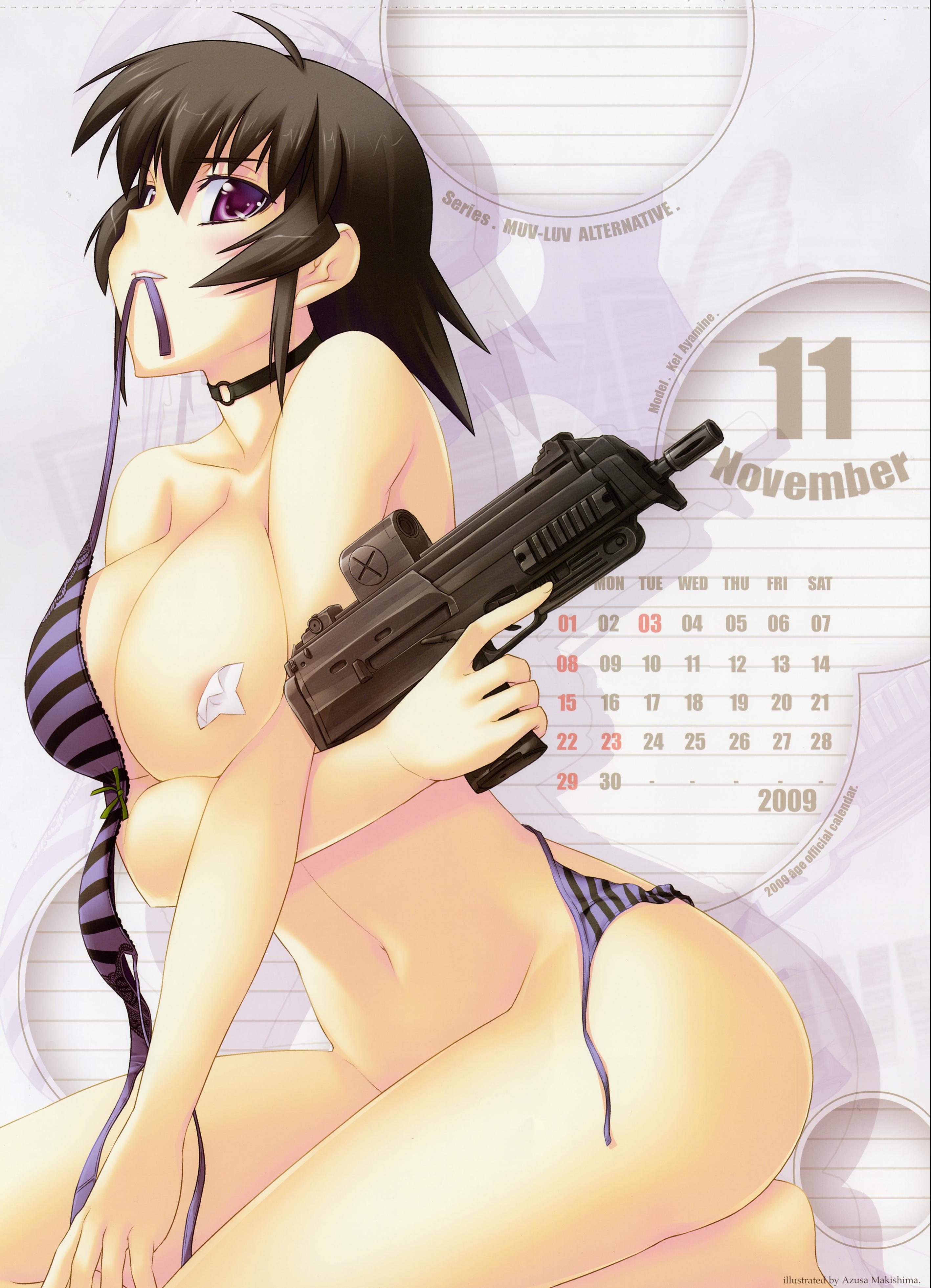 00s1girl2009bitingblack hairbrabreastscalendarchokercleavagefemale focusgunh&k mp7kneelinglarge breastslingeriemouth holdnovemberpantiespastiespersonal defense weaponpurple eyesshort hairside-tie pantiessmilesolostar (symbol)star pastiesstriped brastriped clothesstriped pantiessubmachine guntrigger disciplineunderwearweapon