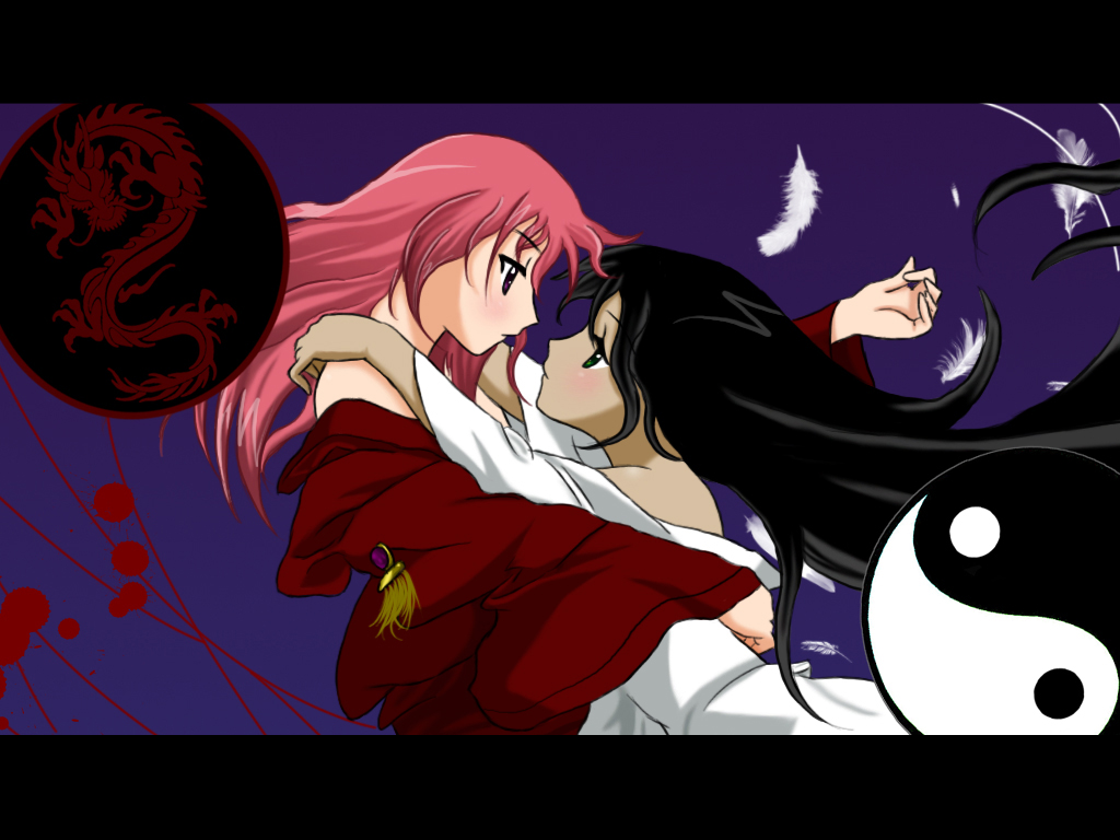 sawachika eri, tsukamoto tenma, tsukamoto yakumo, school rumble, translation request, 00s, 3girls, black hair, blonde hair, blush, breasts, cover, happy, japanese clothes, kimono, long hair, medium breasts, multiple girls, no bra, no panties, short hair, siblings, sisters, smile, towel, two side up, yukata
