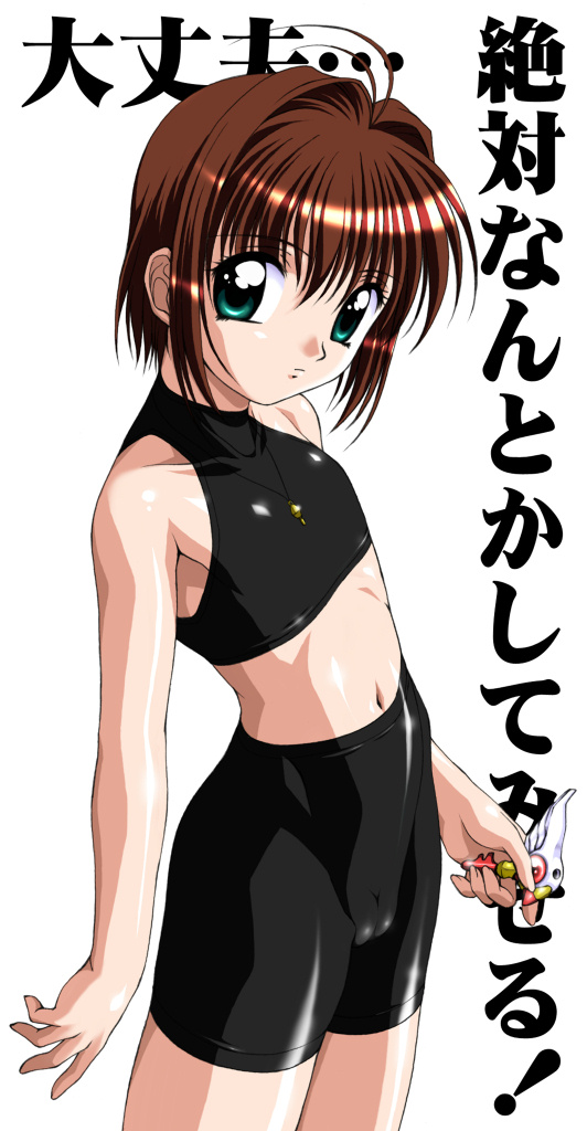 1990s (style)1girlbike shortsbrown haircameltoecleft of venusfemale focusflat chestgreen eyeshalterneckjewelrykeylatexlatex suitlooking at viewernecklacepussyretro artstyleshort hairsimple backgroundskin tightsolosports brawhite background
