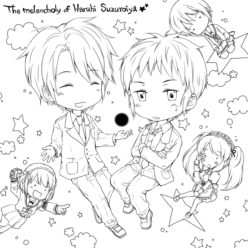 00s2boys3girlsgreyscalelineartmonochromemultiple boysmultiple girlsschool uniformserafukustar (symbol)waitress