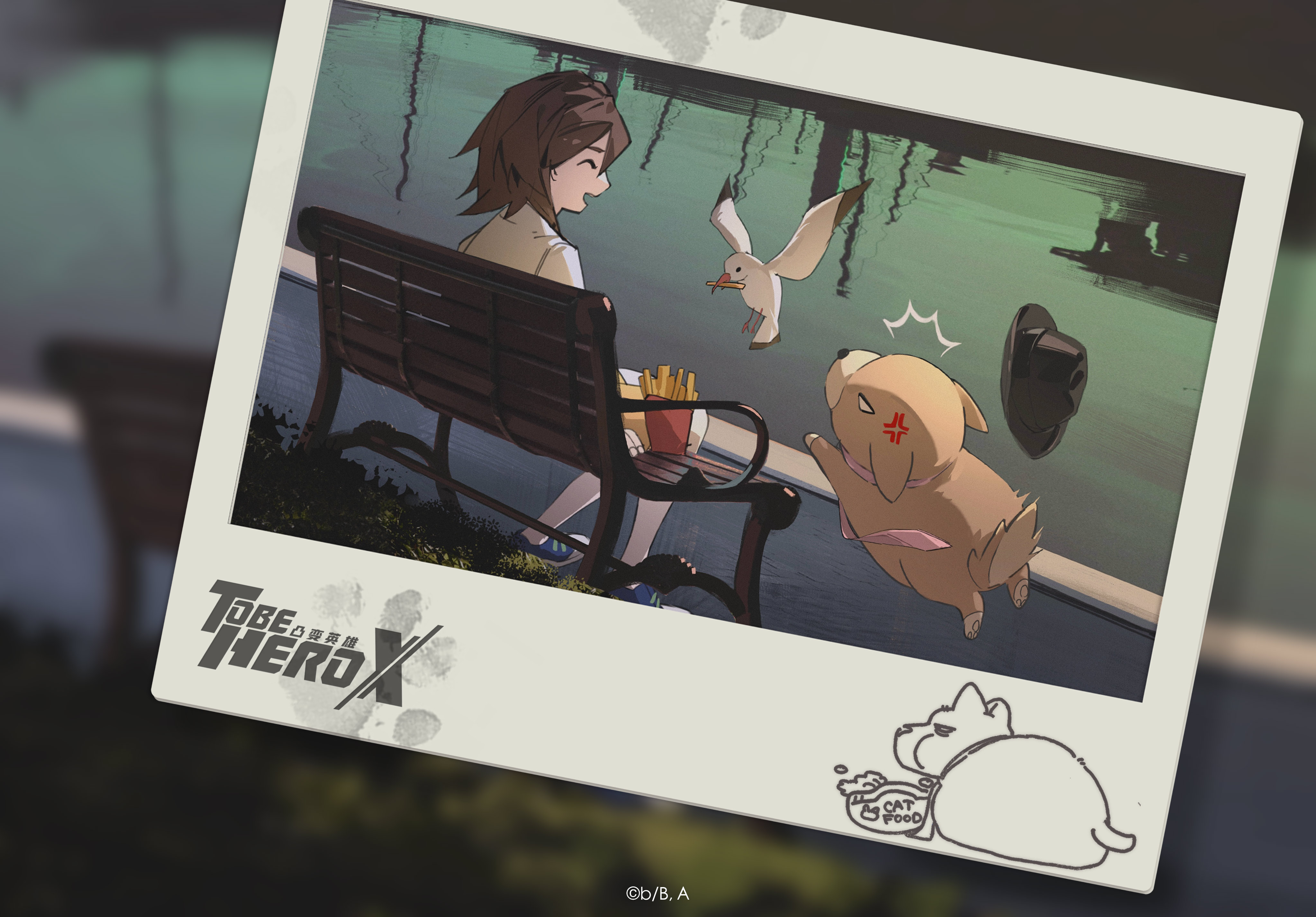1girlanger veinbenchbirdbrown hairclosed eyescopyright logodogdoodle insetfake photographfedorafood theftfull bodyhatjumpinglakelogonecktienotice linesopen mouthreflectionreflective waterseagullshort hairsittingyellow necktiezoom layer
