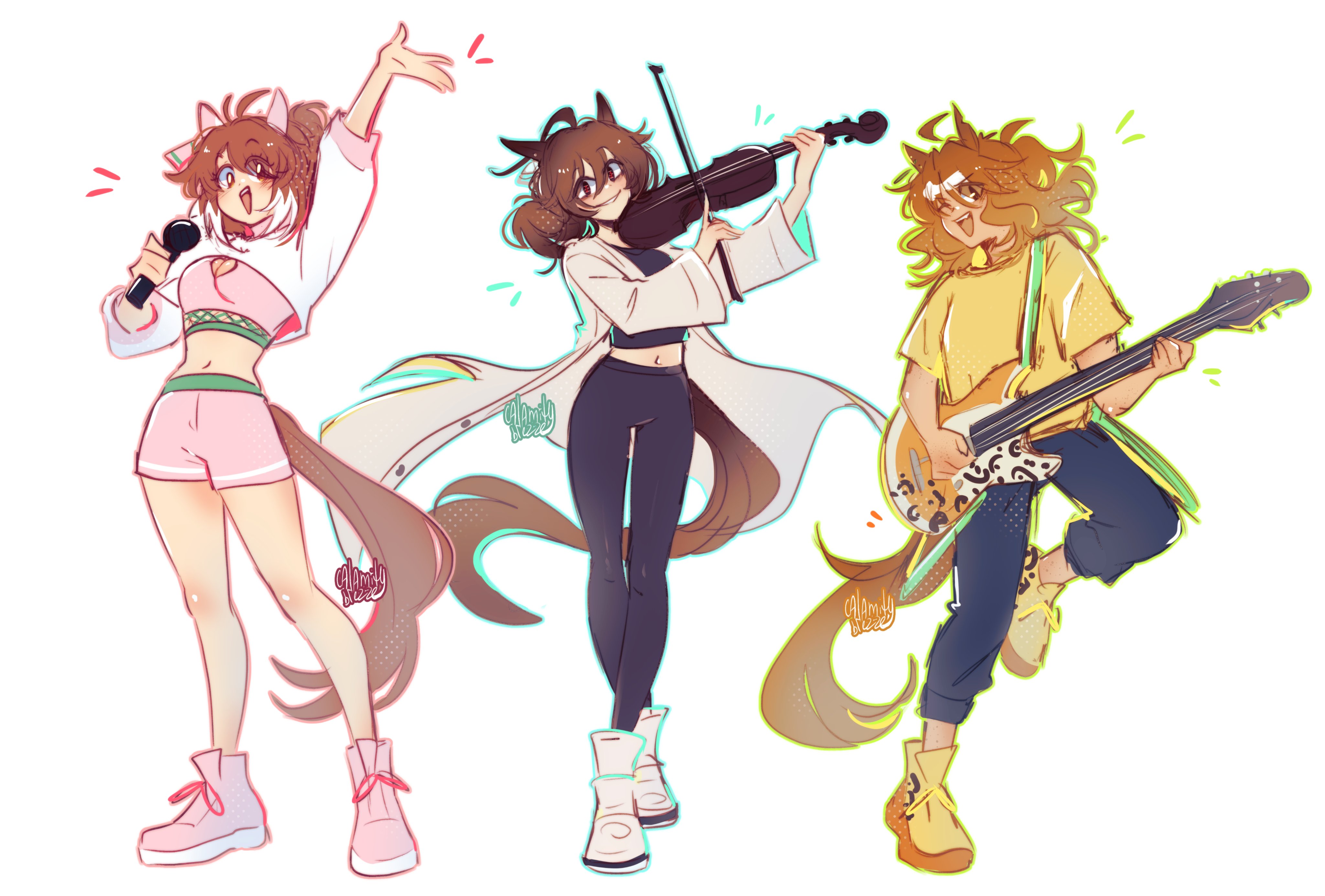 3girlsahogeanimal earsblack leggingsblack shirtblue pantsblushbowbow (music)breastsbrown eyesbrown haircheckered ribboncleavageclosed mouthcoatcropped shirtear coversear ornamentear ribbonearringselectric guitarguitarhair between eyesholdingholding bow (music)holding guitarholding instrumentholding microphoneholding violinhorse earshorse girlhorse tailinstrumentjewelrylab coatleggingslong hairlong sleeveslooking at viewermedium breastsmedium hairmicrophonemidriffmulticolored hairmultiple girlsnavelnotched earone eye closedopen mouthpantspink shirtponytailred eyesshirtshoesshort sleevesshortsshrug (clothing)simple backgroundsingle earringsmilestreaked hairtailviolinwhite backgroundwhite coatwhite hairwhite shortswhite shrugyellow eyesyellow shirt