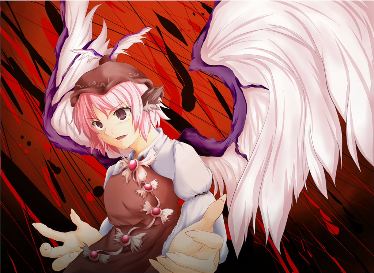 neme, mystia lorelei, touhou, bad id, bad pixiv id, 1girl, animal ears, feathers, female focus, full body, hat, megaphone, pink eyes, pink hair, short hair, solo, thighhighs, wings, zettai ryouiki