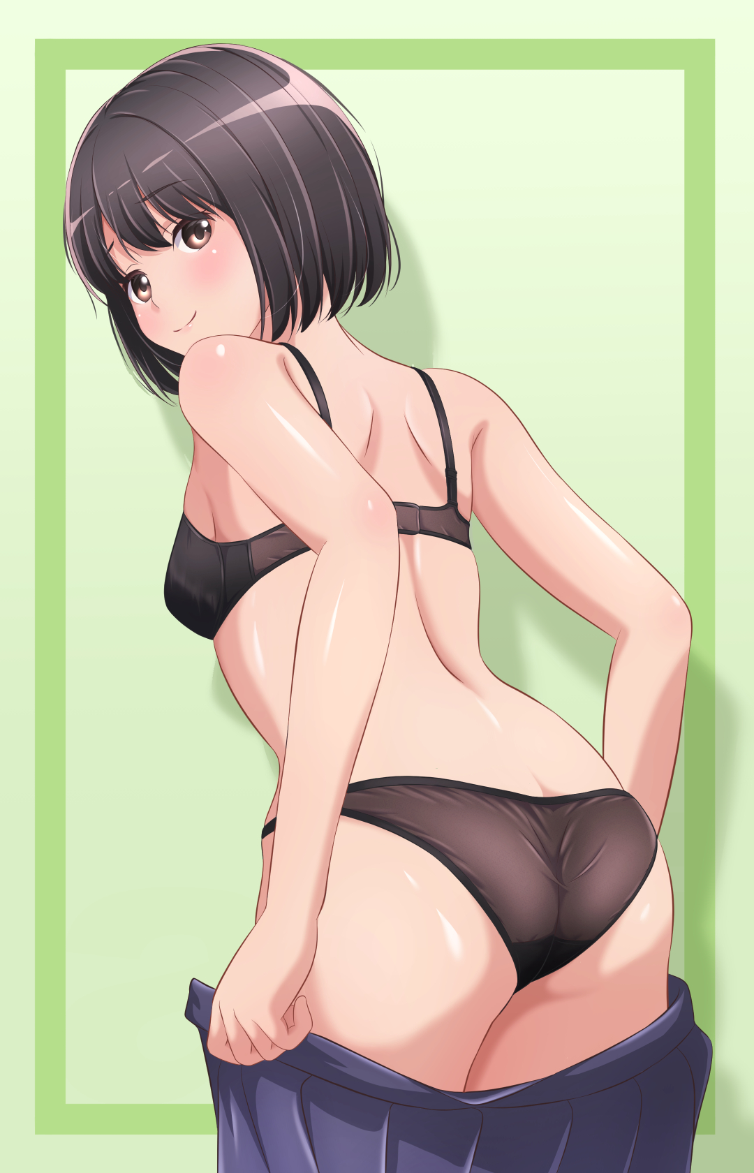 1girlakippoi 0919assbackblack brablack eyesblack hairblack pantiesblue skirtbrabreastsclosed mouthclothes pullcrotch seamfrom behindgreen backgroundleaning forwardlooking at viewerlooking backno shirtopen clothesopen skirtpantiespleated skirtpulling own clothesshort hairskirtskirt pullsmall breastssmilesolostandingunderwearundressing
