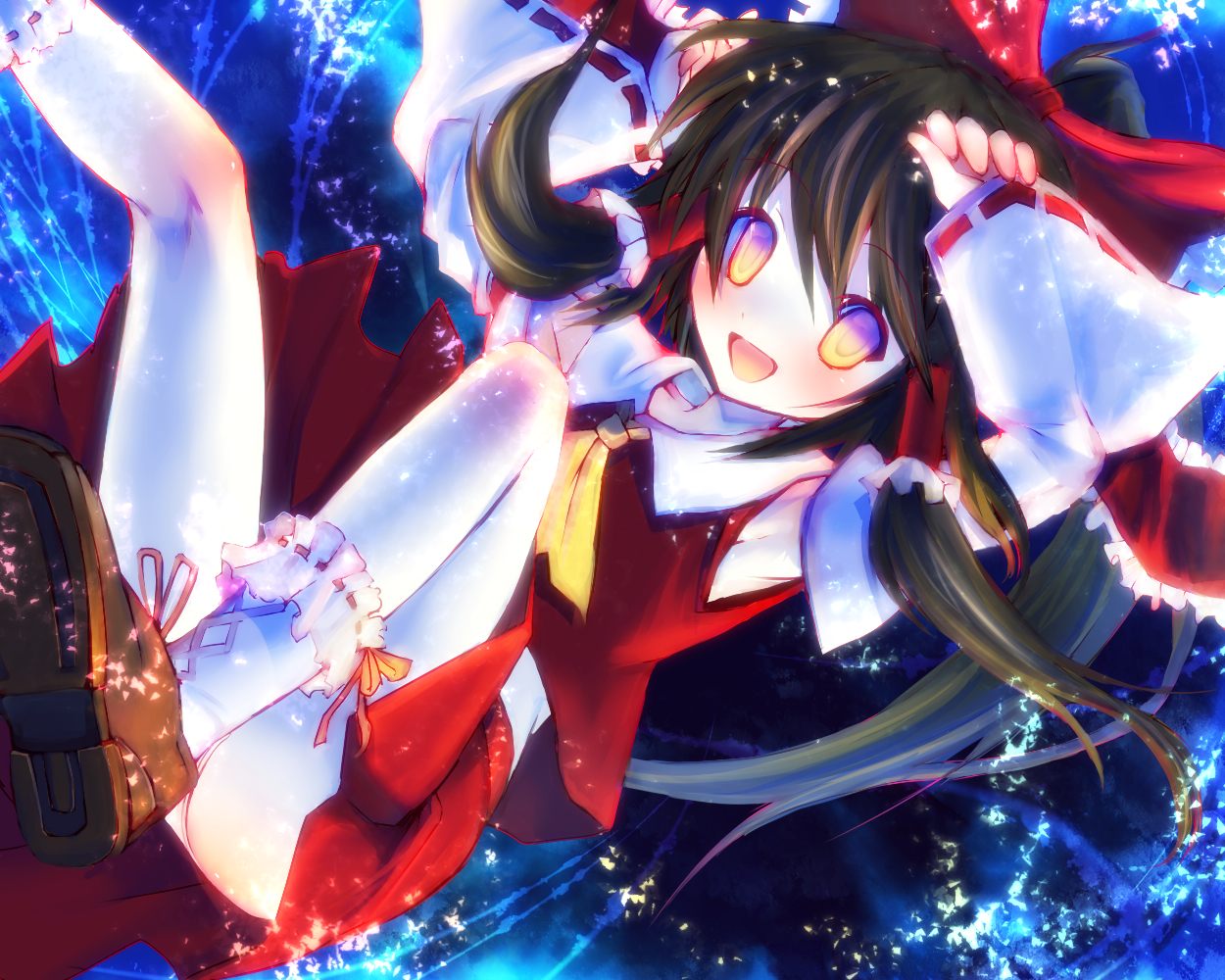 1girlblushbowbrown hairdetached sleevesfemale focushair bowhair tubeslarge bowopen mouthpantiessolounderwearyellow eyes