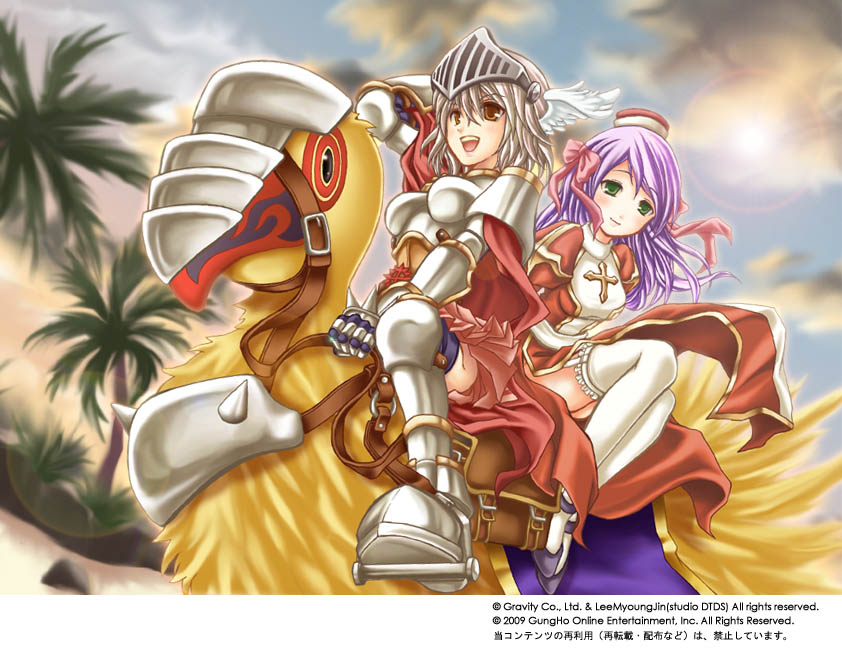2000s (style)20092girlsarmorarmored bootsbardingbirdblue skyboobplatebootsbowbreastplatebrown eyescapeclosed mouthcloudcopyright noticecrossdressfull bodygreen eyesgrey hairhair bowholdingholding reinsjuliet sleeveslens flarelong hairlong sleeveslooking at viewerminiskirtmultiple girlsopen mouthoutdoorspalm treepink bowpink skirtpuffy sleevespurple hairred capered dressreinsridingriding birdsashskirtskysmilespiked gauntletsthighhighstreetwo-tone dressvisor (armor)white dresswhite sashwhite thighhighs