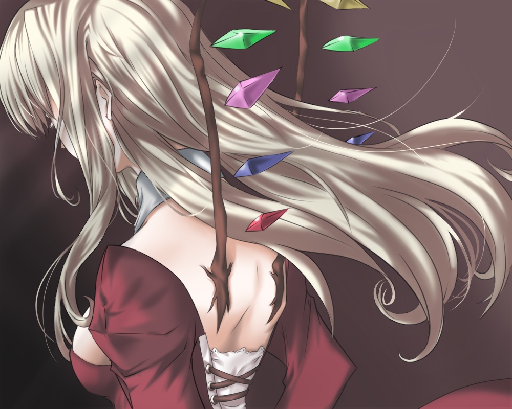 1girlaged upalternate breast size (larger)backblonde haircrystaldetached collardresseyelashesfemale focusred backgroundsolowings