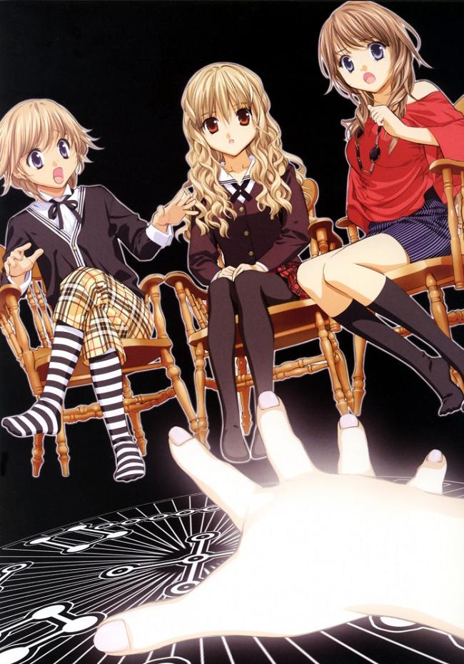 :d:o2girlsblack backgroundblack socksblonde hairblue eyesbrown eyesbrown haircapri pantscardiganchaircrossed legscurly hairfingernailsfloatinghands on lapjewelrykneehighslong hairlong sleeveslooking at viewermagicmagic circlemultiple girlsneck ribbonnecklaceno shoesopen mouthout of frameoutlinepantspantyhosepinstripe patternplaid clothesplaid pantsplaid skirtpleated skirtred eyesribbonschool uniformshort hairsittingskirtsockssurprisedthighhighsvertical stripeswing collar
