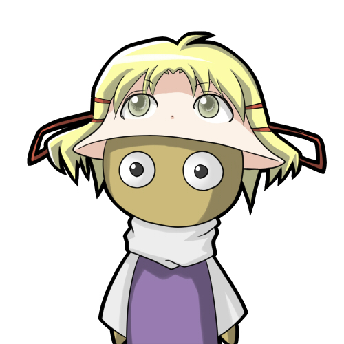 1girlblack eyesblonde hairdressfemale focushair ornamenthatparodyribbonrole reversalshort hairsimple backgroundsolowhatwhite backgroundyellow eyes