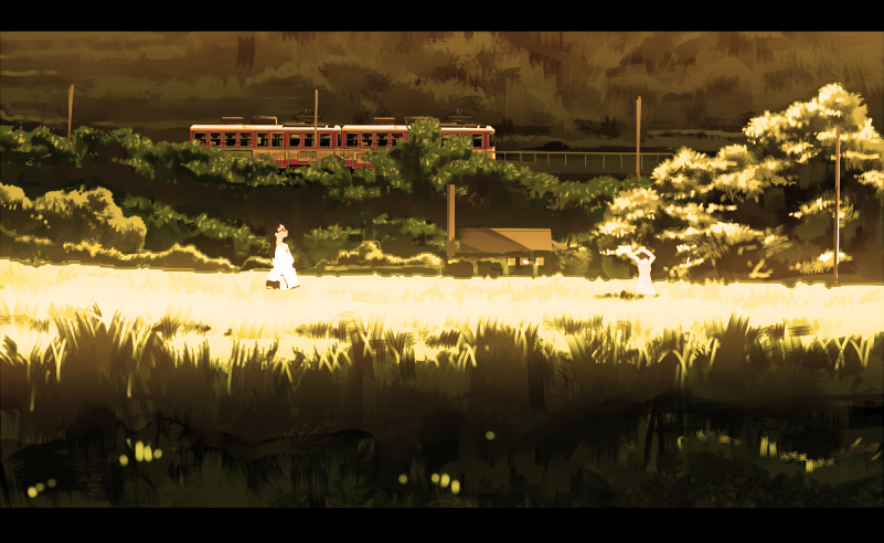 ry (yagoyago), lily white, touhou, 1girl, blonde hair, female focus, hat, japanese clothes, kimono, long hair, matching hair/eyes, orange eyes, orange hair, outdoors, outstretched arms, sky, solo, spread arms