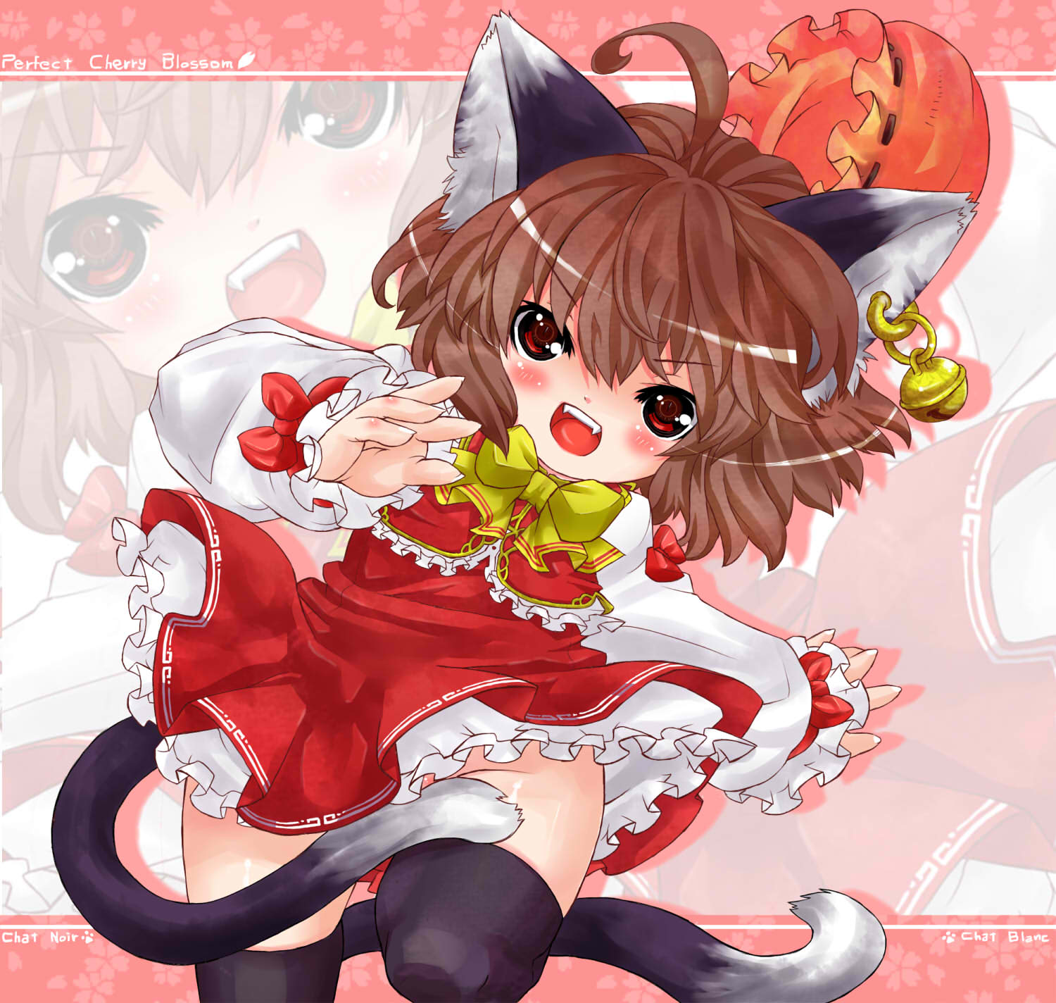 1girlahogeanimal earsbellbrown haircat earscat girlcat taildressearringsfangsfemale focushatjewelryjingle bellmultiple tailsred eyesshort hairsolotailthighhighsunderwear