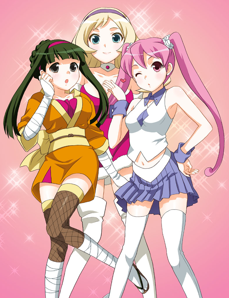 :o00s3girlsaged upaqua eyesbandagesblonde hairblowing kissblushbootschokerfishnetsgreen eyesgreen hairgrey eyeshair bunhairbandheartjapanese clotheskimonoleg liftlong hairmidriffmultiple girlsnavelnetghost pipopaninjaone eye closedopen mouthpink eyespink hairpleated skirtsandalsshirtshort kimonosingle hair bunskirtsleevelesssleeveless shirtsmilesparkletabithigh bootsthighhighstwintailswhite thighhighswinkwrist cuffszettai ryouiki