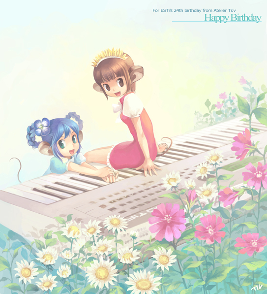 :d2girlsanimal earsartist nameblue dressblue eyesblue flowerblue hairblue sleevesblunt bangsbowbraidbraided hair ringsbreastsbrown eyesbrown hairbrown tailbrown tailsdated commentarydigital pianodouble-parted bangsdressdress bowenglish textflowerhair flowerhair ornamenthair ringshalf updohappy birthdayheaddressinstrumentkeyboard (instrument)leafmedium breastsmedium hairmouse earsmouse girlmouse tailmultiple girlsopen mouthpale colorpink flowerpuffy short sleevespuffy sleevesred dressshort hairshort sleevessidelockssignaturesittingsmiletailtonguewhite bowwhite flowerwhite sleevesyellow headdress