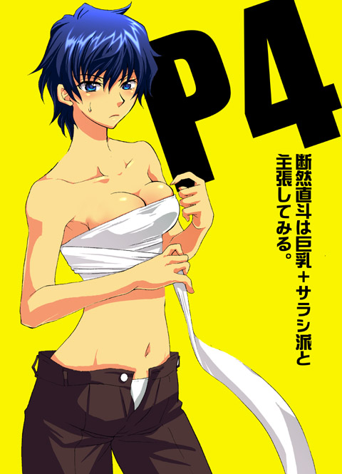 1girlbandagesbreast bindbreastscleavagefemale focusmedium breastsopen flysarashishort hairsolounzipped