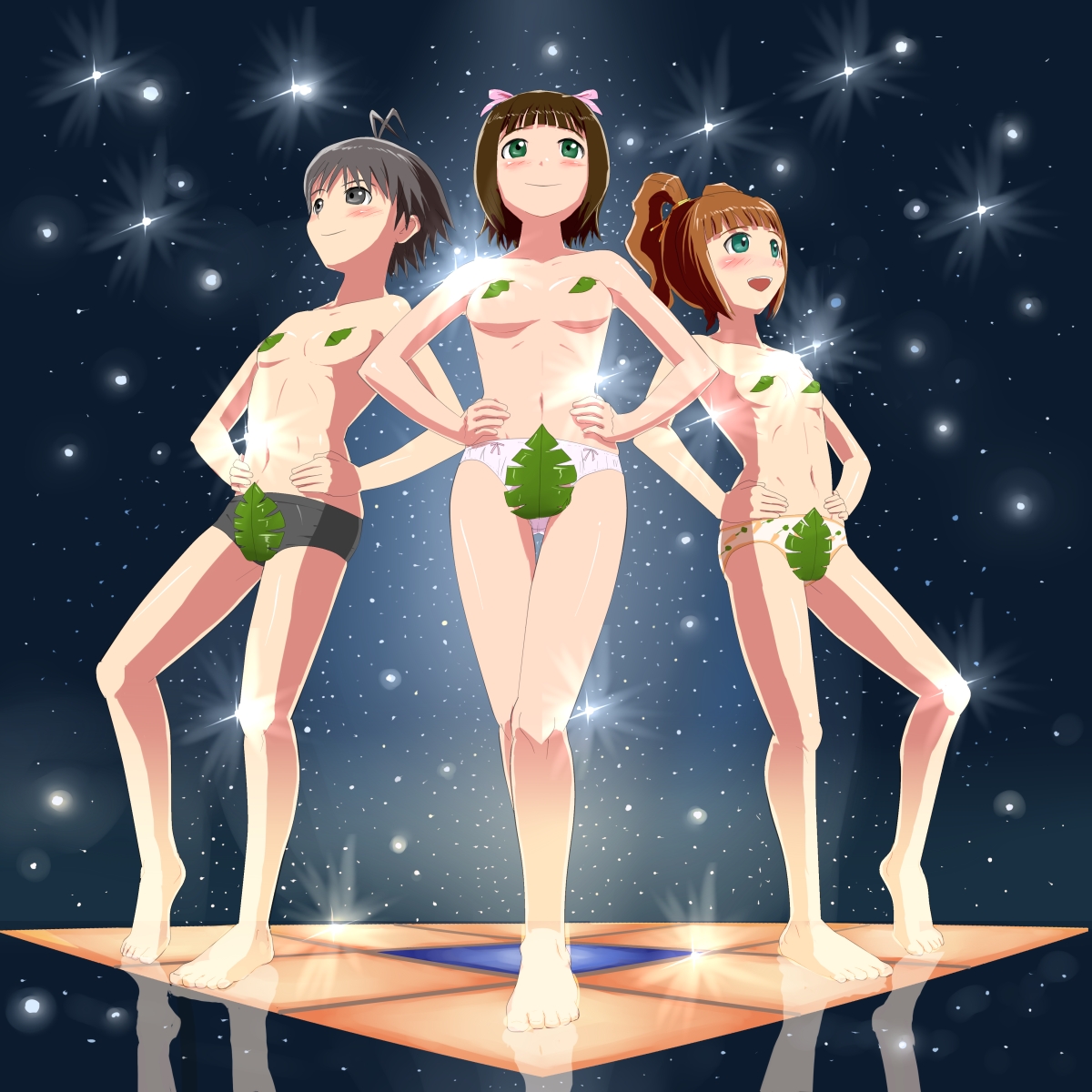 saitou ayumi, yasuoka shion, shion no ou, black legwear, 00s, 1boy, 2girls, black hair, blue hair, brown hair, cowboy shot, dual persona, expressionless, from side, glasses, hand in pocket, hat, long hair, long sleeves, looking at viewer, multiple girls, rimless eyewear, saito ayumi, shirt, short hair, standing, sweater, thighhighs, trap, very long hair, white shirt, zettai ryouiki