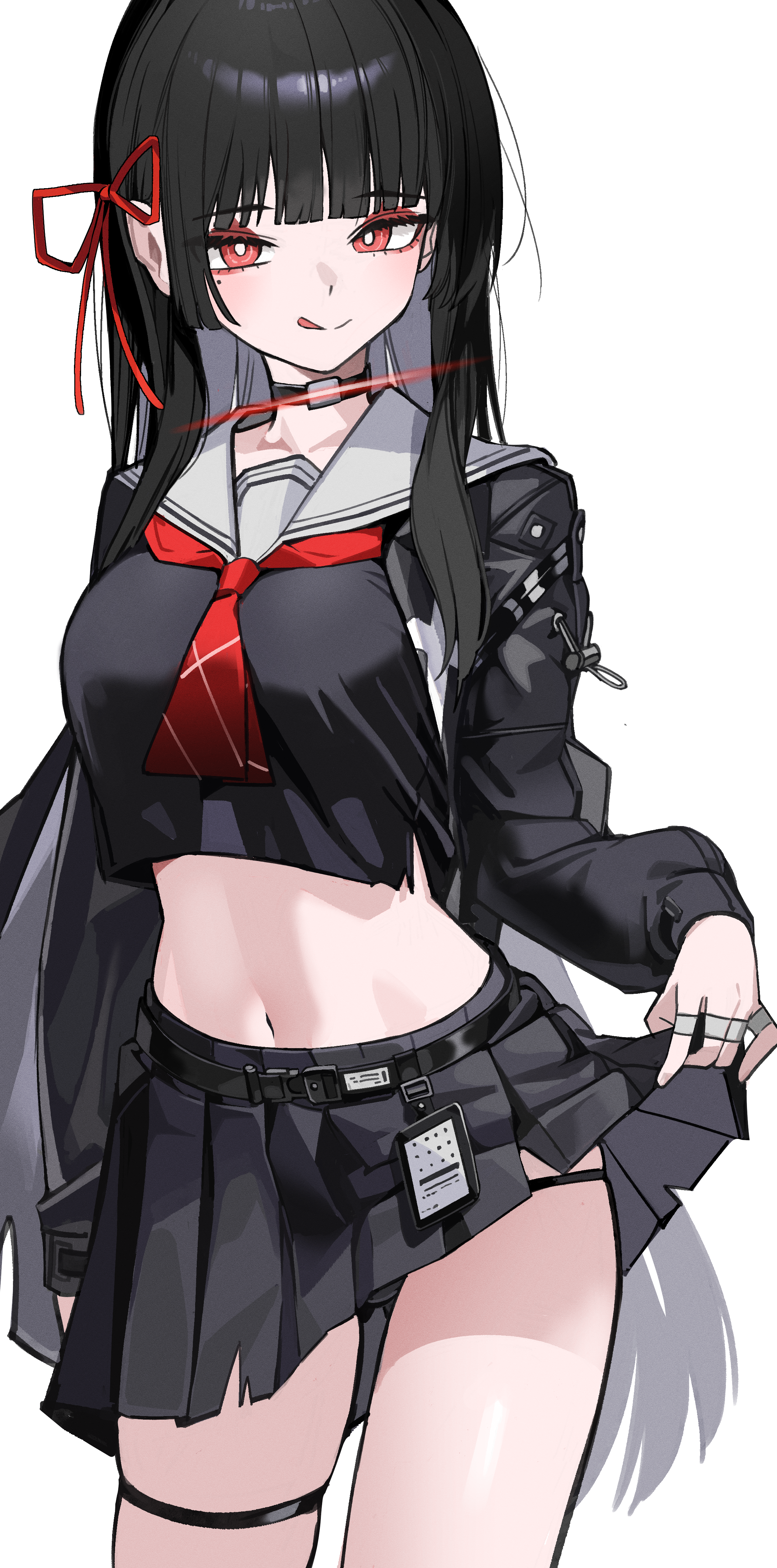 :q1girlbeltblack chokerblack hairblack serafukublack shirtblack skirtbreastsbright pupilschokerclosed mouthclothes liftcolored inner haircowboy shotcrop topcrop top overhangdiffraction spikeseyeshadowhair ribbonlarge breastslifting own clotheslong hairlong sleeveslooking at viewermakeupmidriffminiskirtmolemole under eyemulticolored hairnavelneckerchiefpleated skirtred eyesred neckerchiefribbonsailor collarschool uniformserafukushirtsimple backgroundskindentationskirtskirt liftsmilesolostomachthigh strapthighstonguetongue outvery long hairwhite backgroundwhite sailor collar