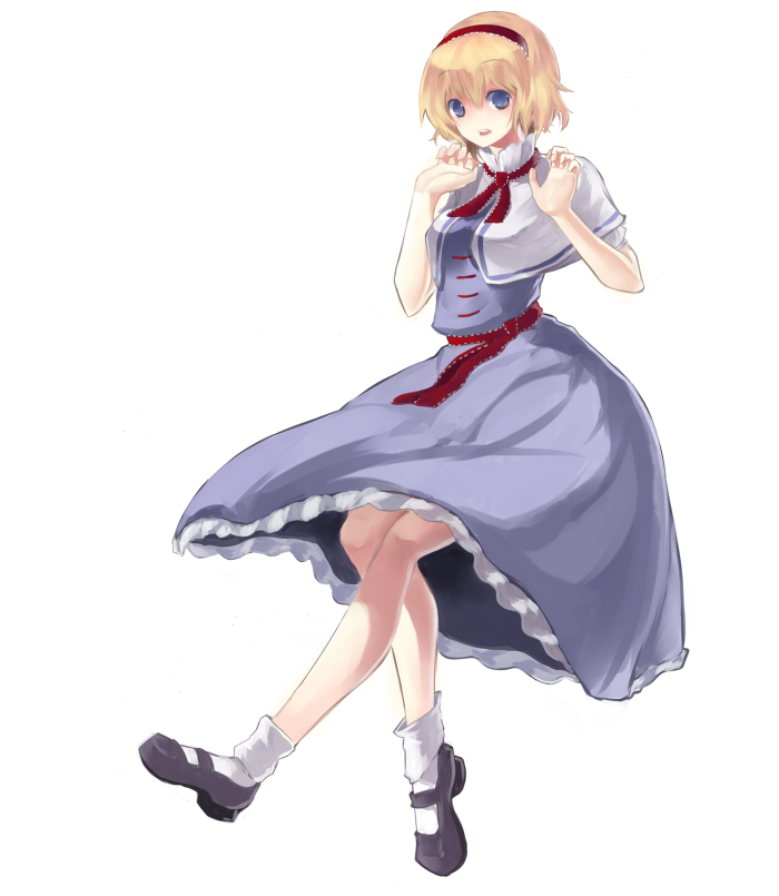 1girlblonde hairblue eyesfemale focusfull bodyhairbandribbonshort hairsimple backgroundsolowhite background