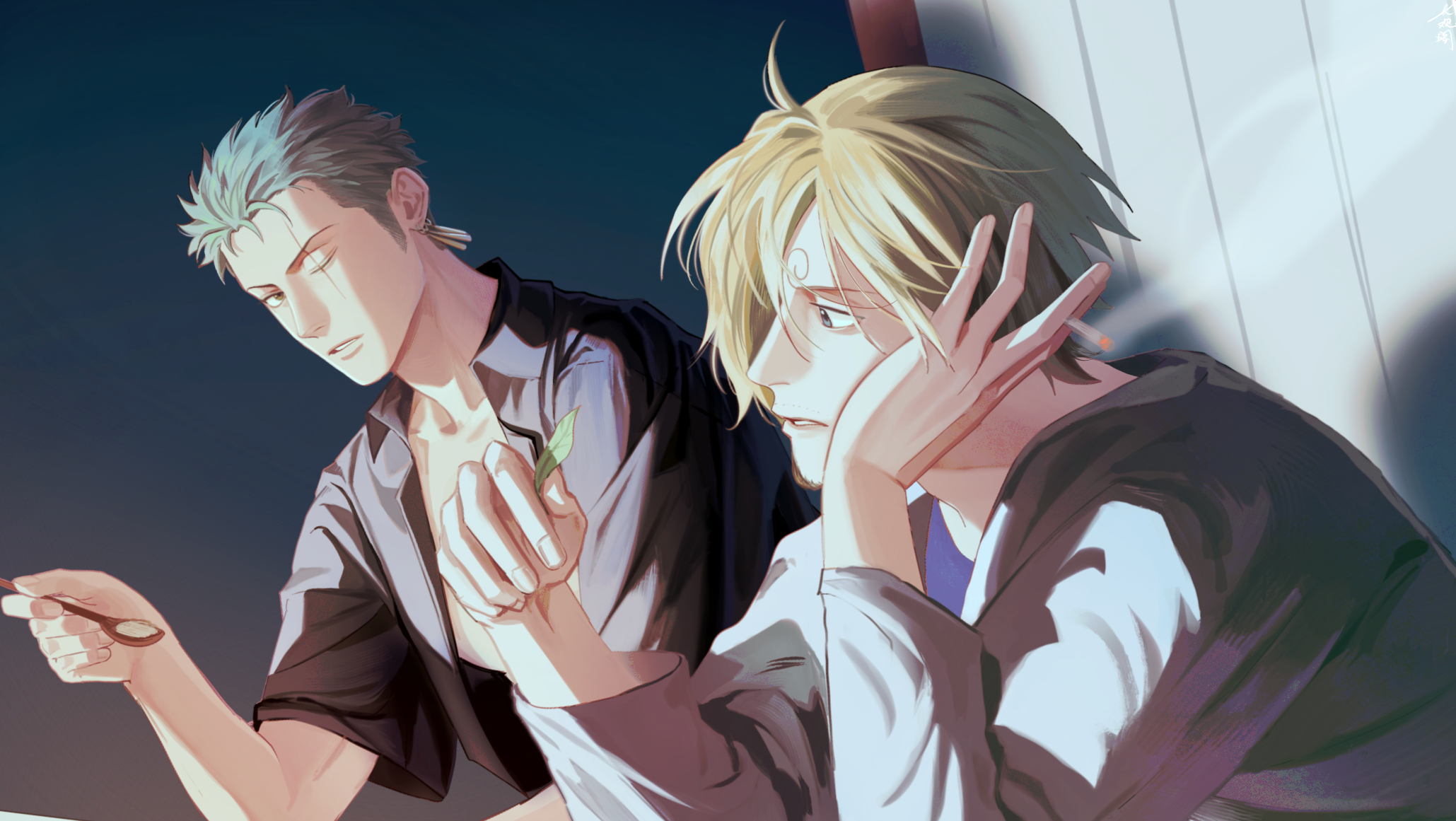 2boysblack shirtblonde haircigarettecollarbonecurly eyebrowsearringsgrey shirtholdingholding spoonjewelrymale focusmultiple boysopen clothesopen shirtparted lipsscarscar across eyescar on faceshirtshort hairsideburnssmokingspoon
