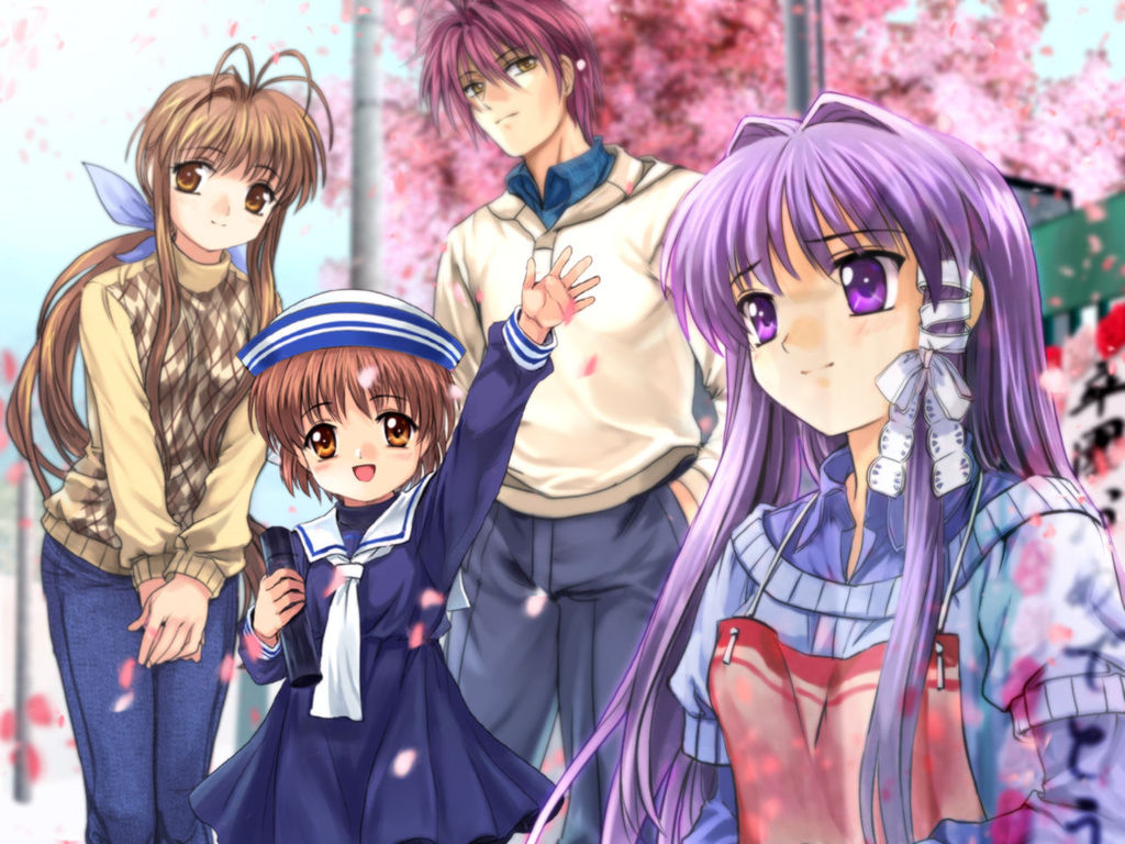 :d00s1boy3girlsantenna hairapronargyle clothesargyle sweaterbrown eyesbrown haircherry blossomsdenimdiplomadressgraduationhair ribbonholdingholding diplomajeanskindergarten teachermultiple girlsopen mouthpantspetalspurple eyespurple hairribbonsailor dressschool uniformshort hairsmilesweaterwaving