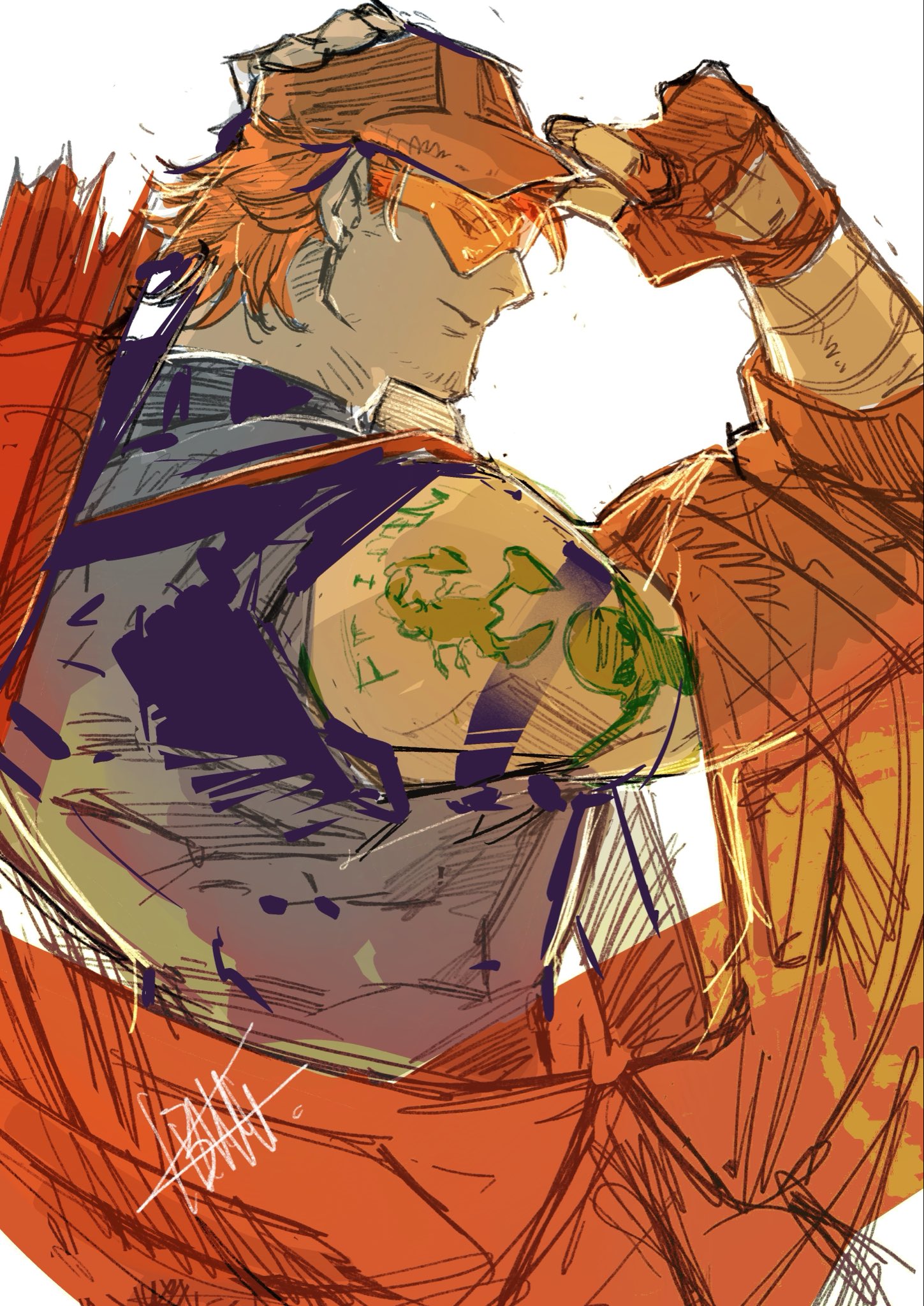 archerybaseball capbodysuitgloveshatjacketmale focusmulticolored bodysuitmuscularmuscular maleorange hairpantsred bodysuitred hood and the outlawsshort hairsuperhero costumetaut bodysuittwo-tone bodysuit