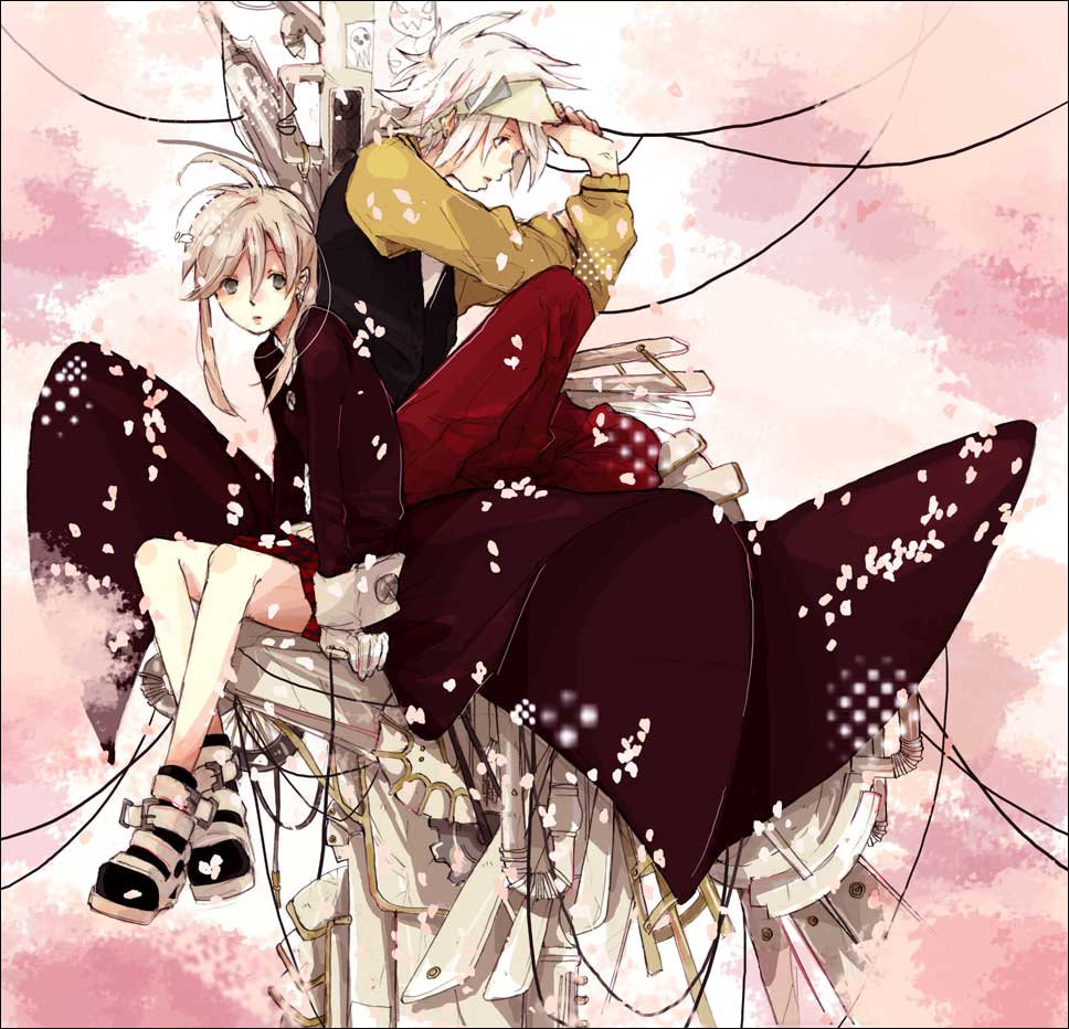 00sblonde haircherry blossomscoatglovesgreen eyesplaid clothesplaid skirtsittingskirttwintails